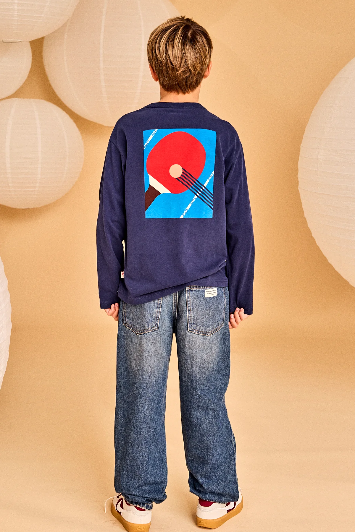 Långärmad T-shirt i mjuk bomull, litet tryck på framsida och stort tryck på ryggen.