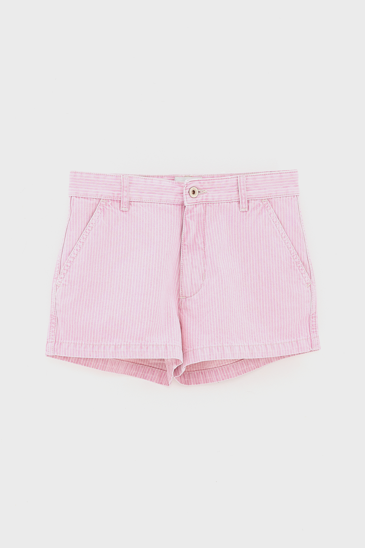 Shorts Kristen blir snabbt en favorit att bära under säsongens varma dagar! En klassisk modell med diagonala fickor, trendigt designad i en rosa och vit randig tvätt.