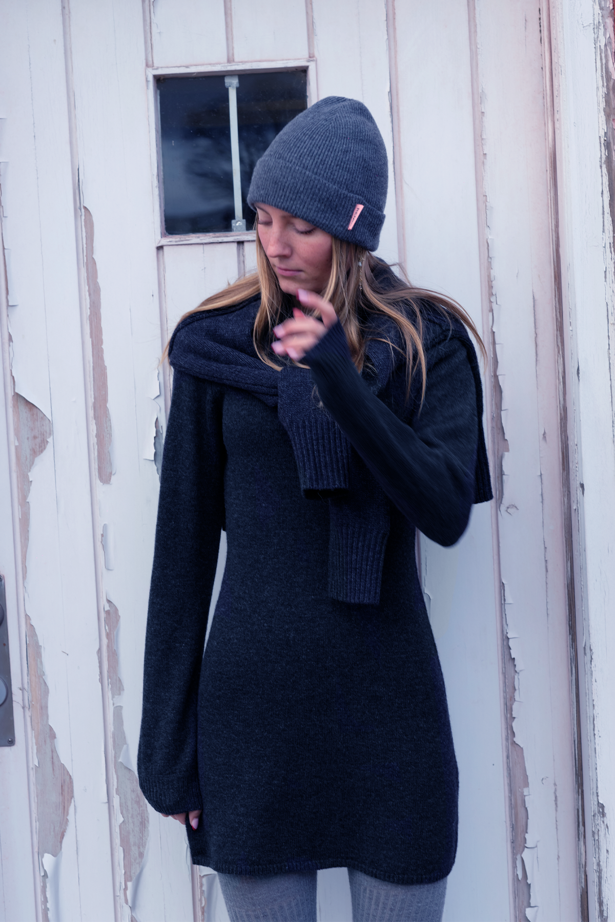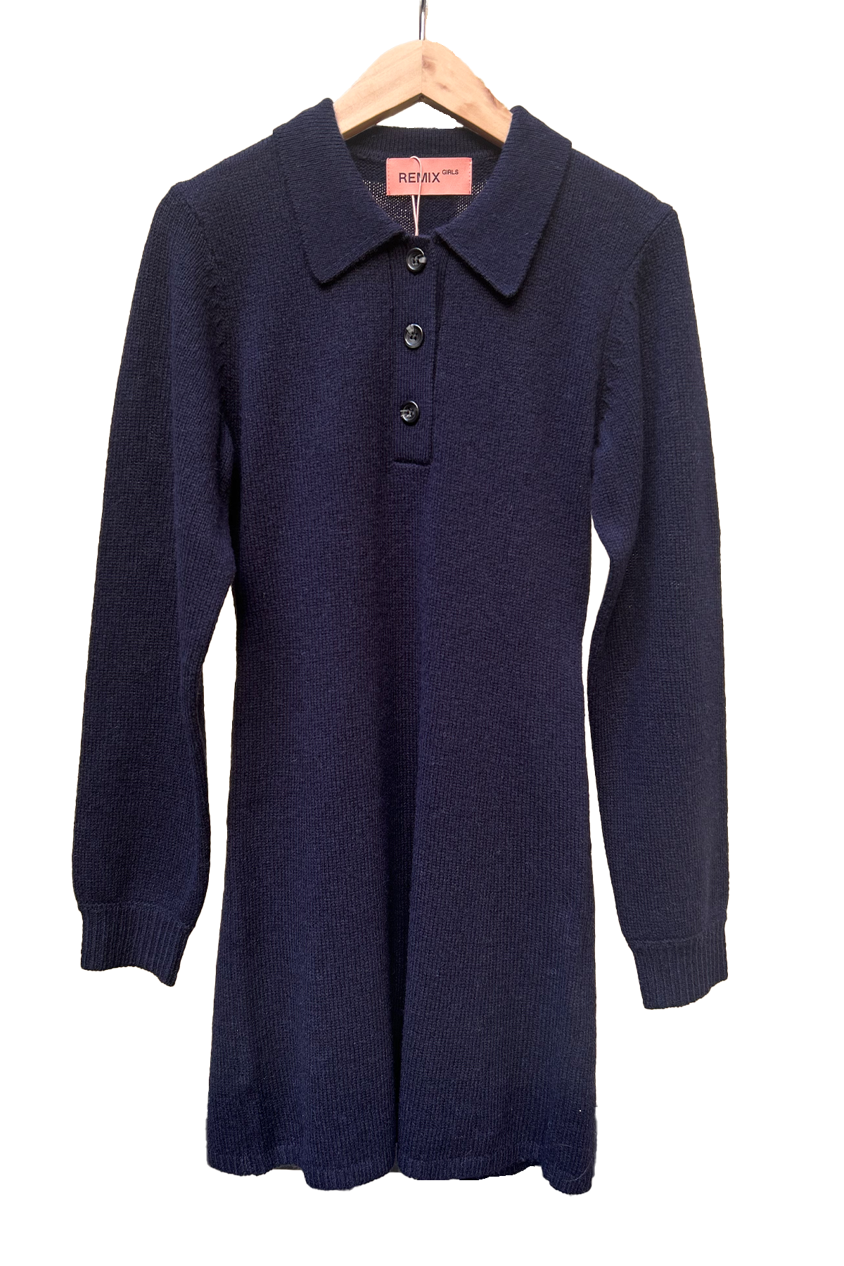 Finstickad klänning tillverkad i mjuk och värmande ull, designad i en klassiskt charmig modell med spetsig krage och knäppning framtill.