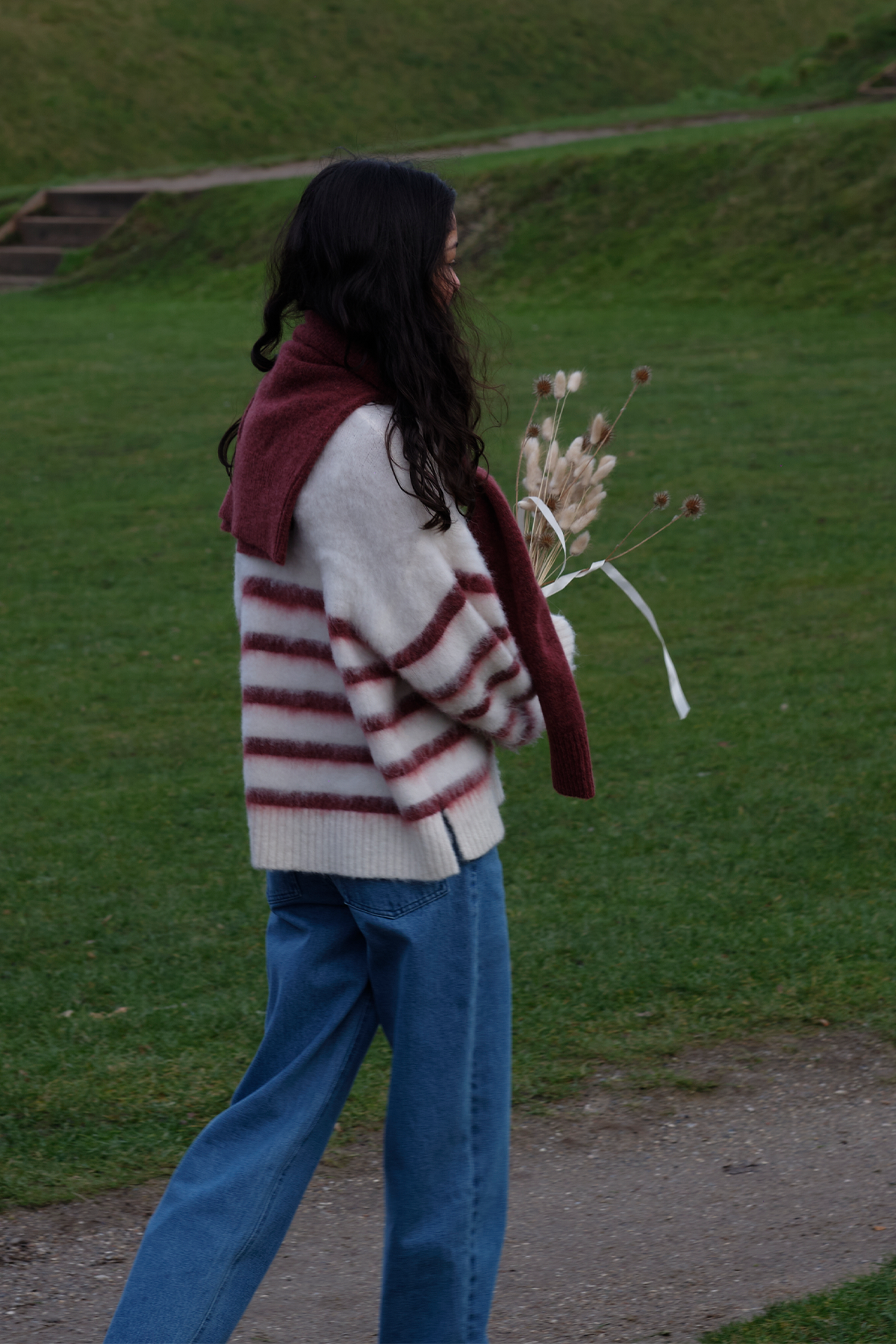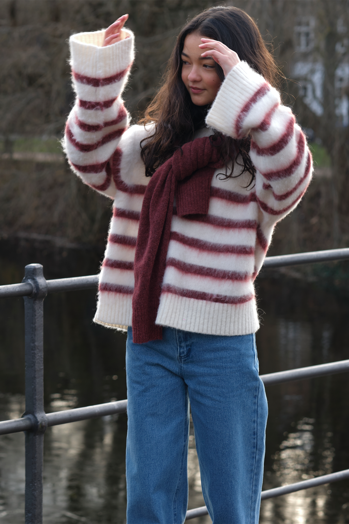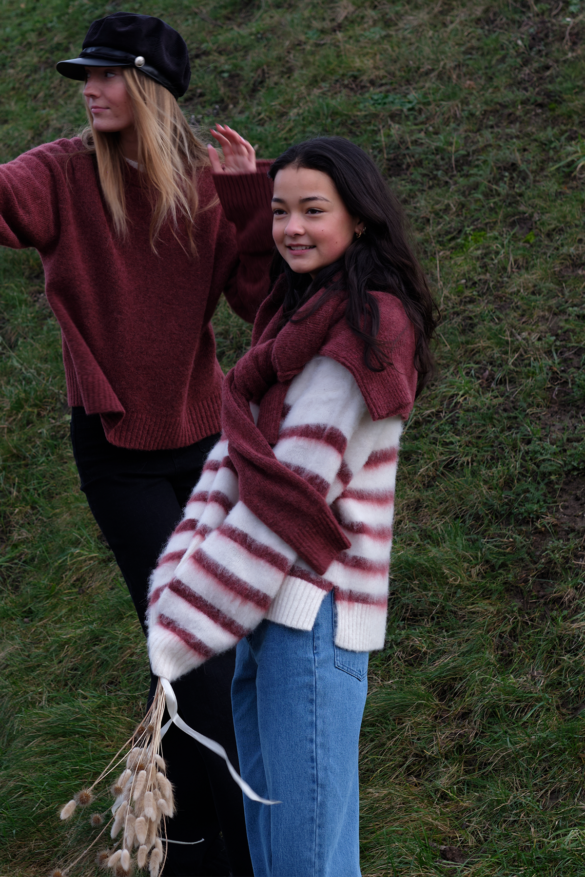 Långärmad tröja i en härligt mjuk och värmande kombination av alpacka och ull! Designad i en oversized passform med lätt croppad längd och finns i två färger att välja mellan - trendig burgundy eller klassisk marin!
