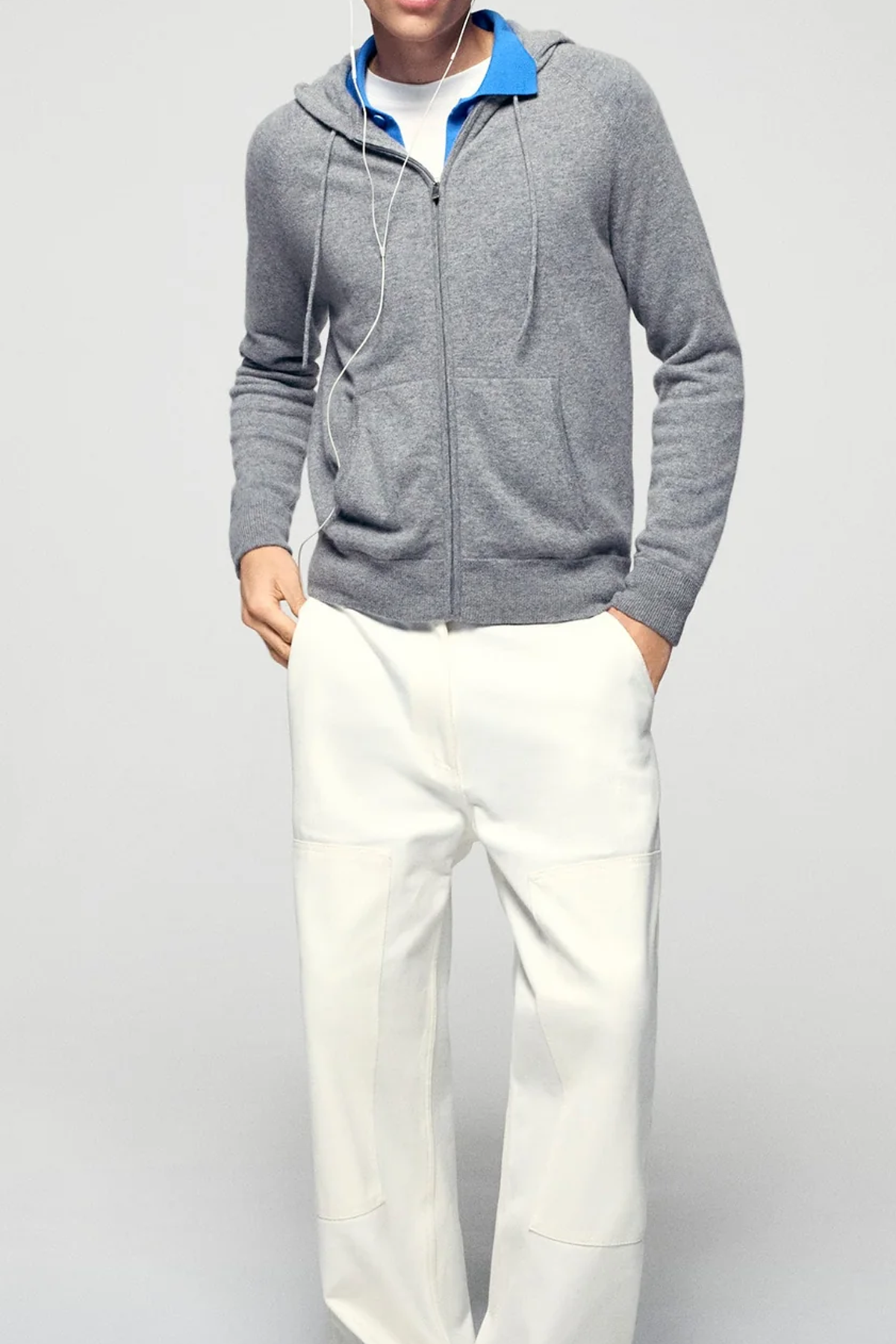 Finstickad kashmirhoodie med dragkedja, försedd med två rymliga fickor och dragsko att justera huvan till önskad passform med. En perfekt match till säsongens coola jeans!
