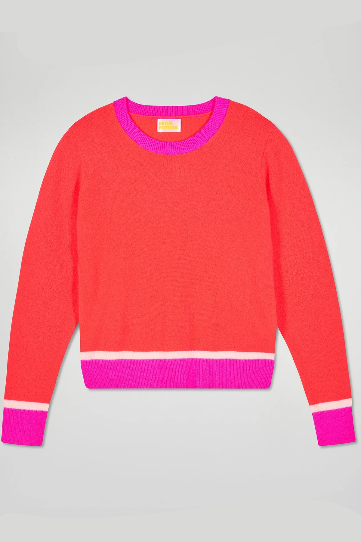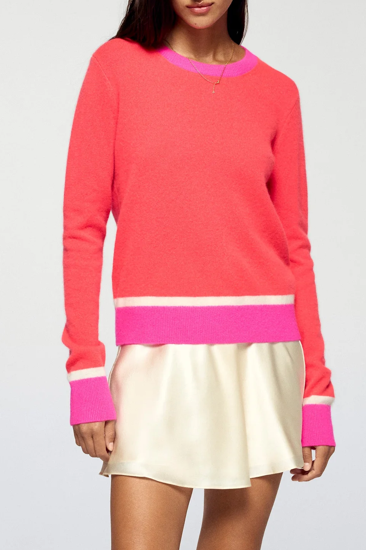 Rundhalsad tröja i långärmad modell tillverkad i 100% GCS* kashmir. Tröjan är designad i en lekfull kombination av två starka nyanser, vilka ger en cool kontrast och en perfekt match till favoritjeansen!