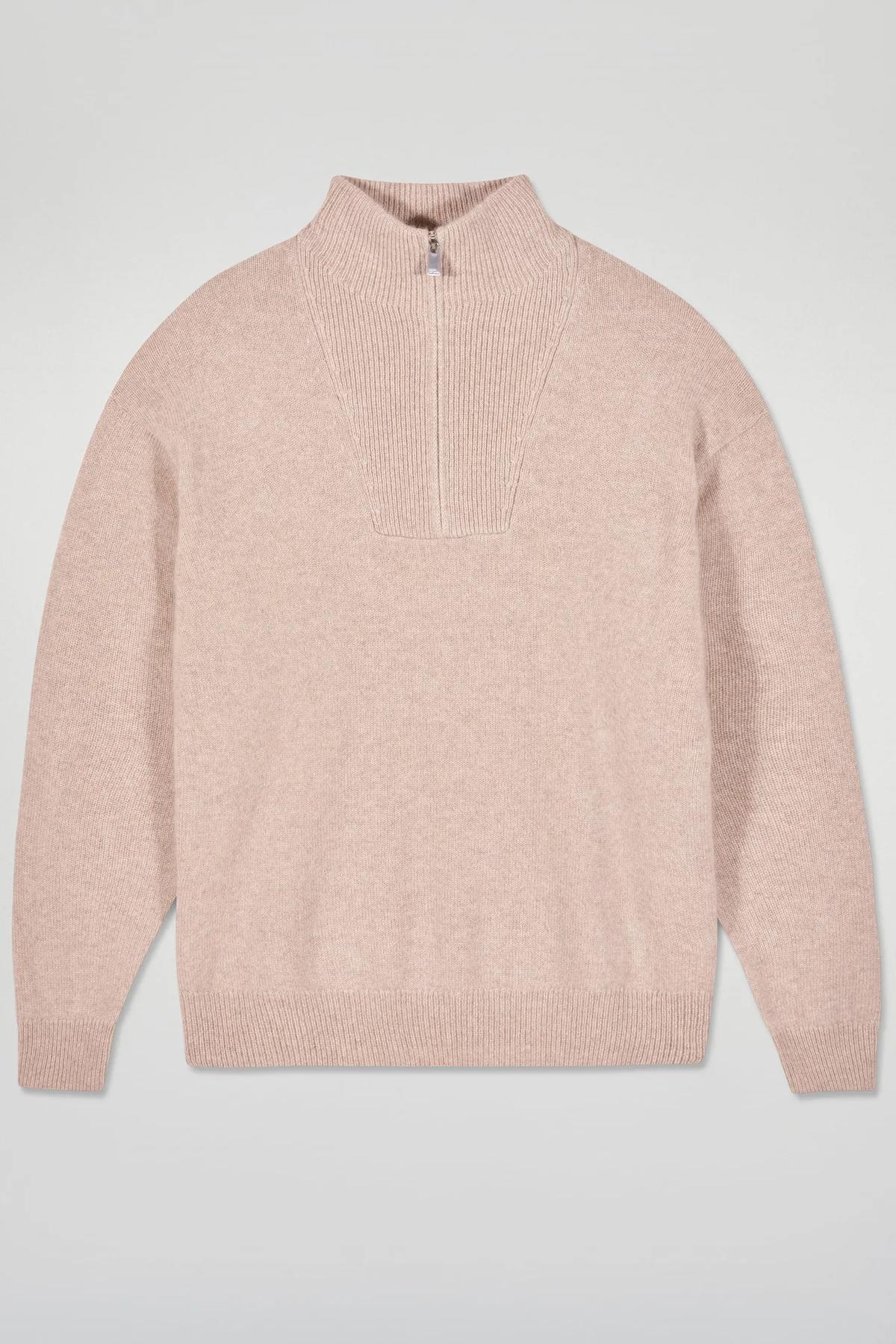 Ett säkert trendkort till garderoben - en klassisk half zip tillverkad i exklusiv kashmir. Tröjan har långa ärmar med muddade kantslut, en upphöjd krage med halvzip och en oversized passform för en coolt ledig look. En värmande favorit att bära till restaurangbesöket som till vardags!