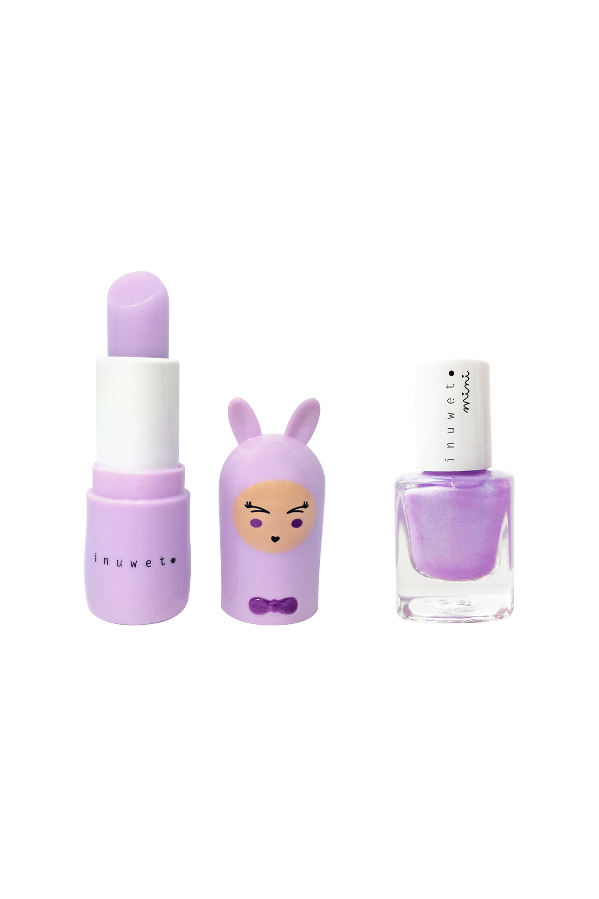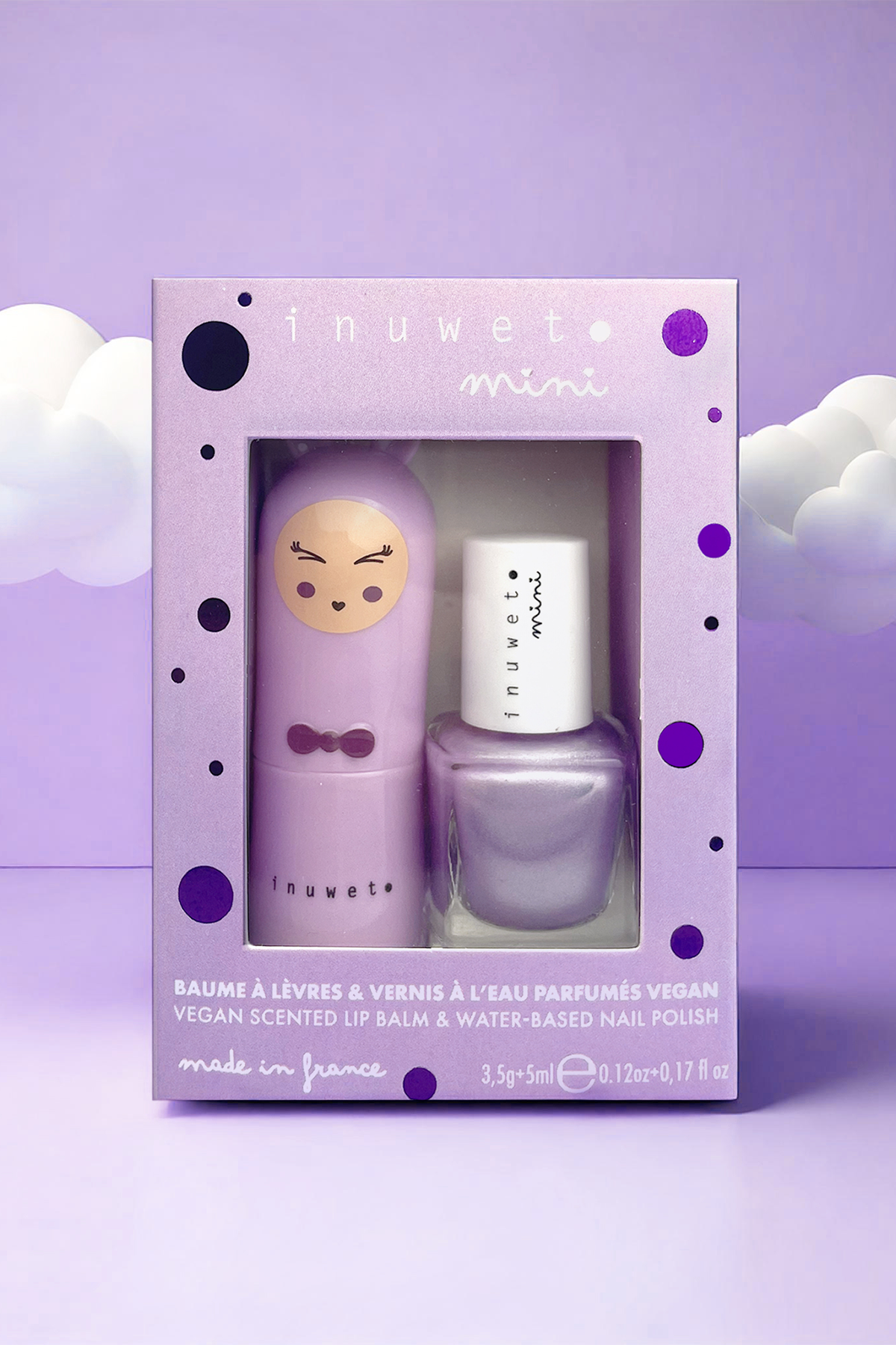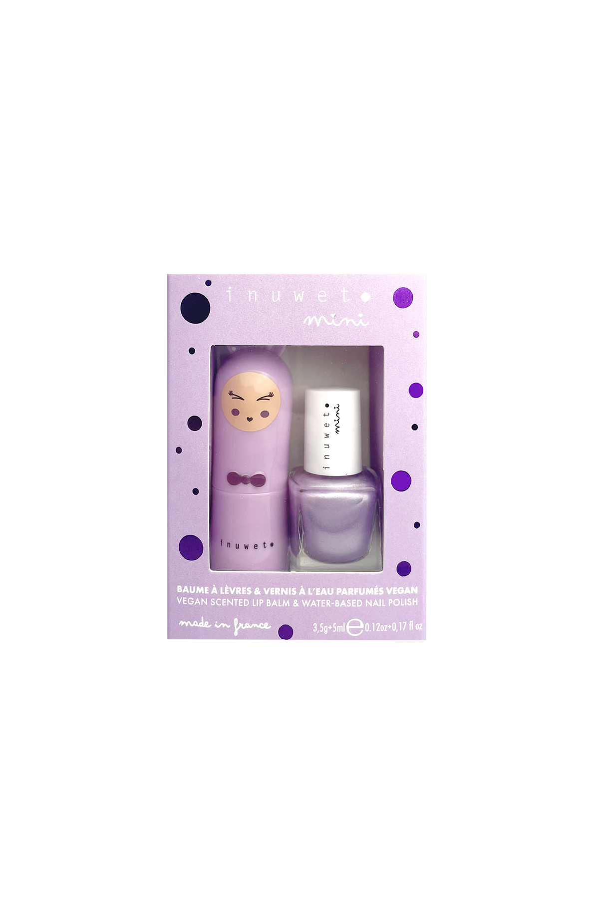I lila setet: Läppbalsam med marshmallowsmak och ett blåbärsdoftande lila nagellack.