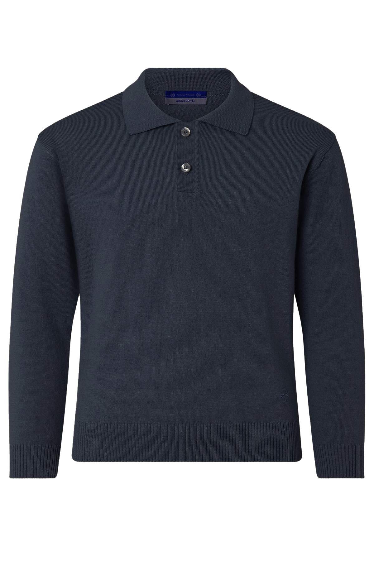 Finstickad tröja med krage och knappar fram. Tröjan har en slimmad passform, breda muddar och en liten logo broderad i högra hörnet på framsidan.
