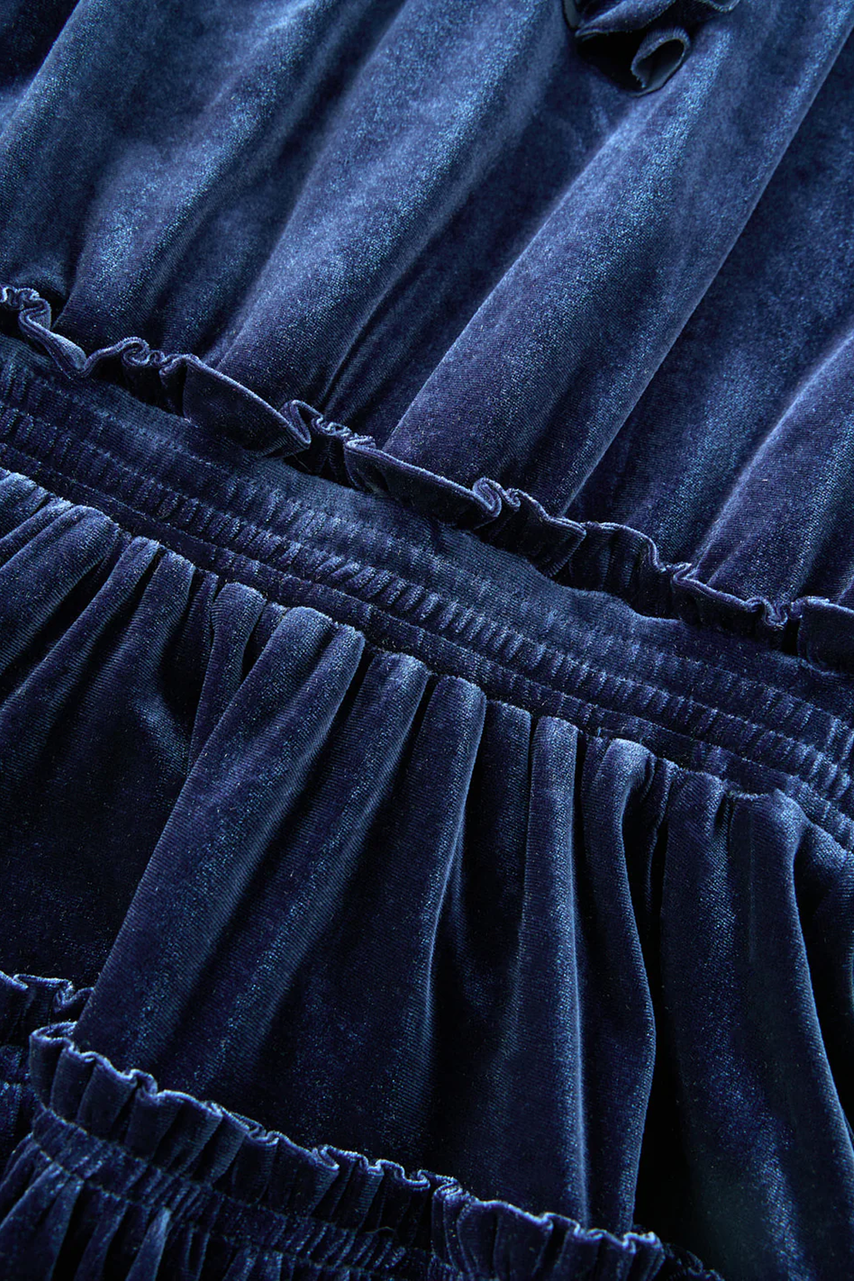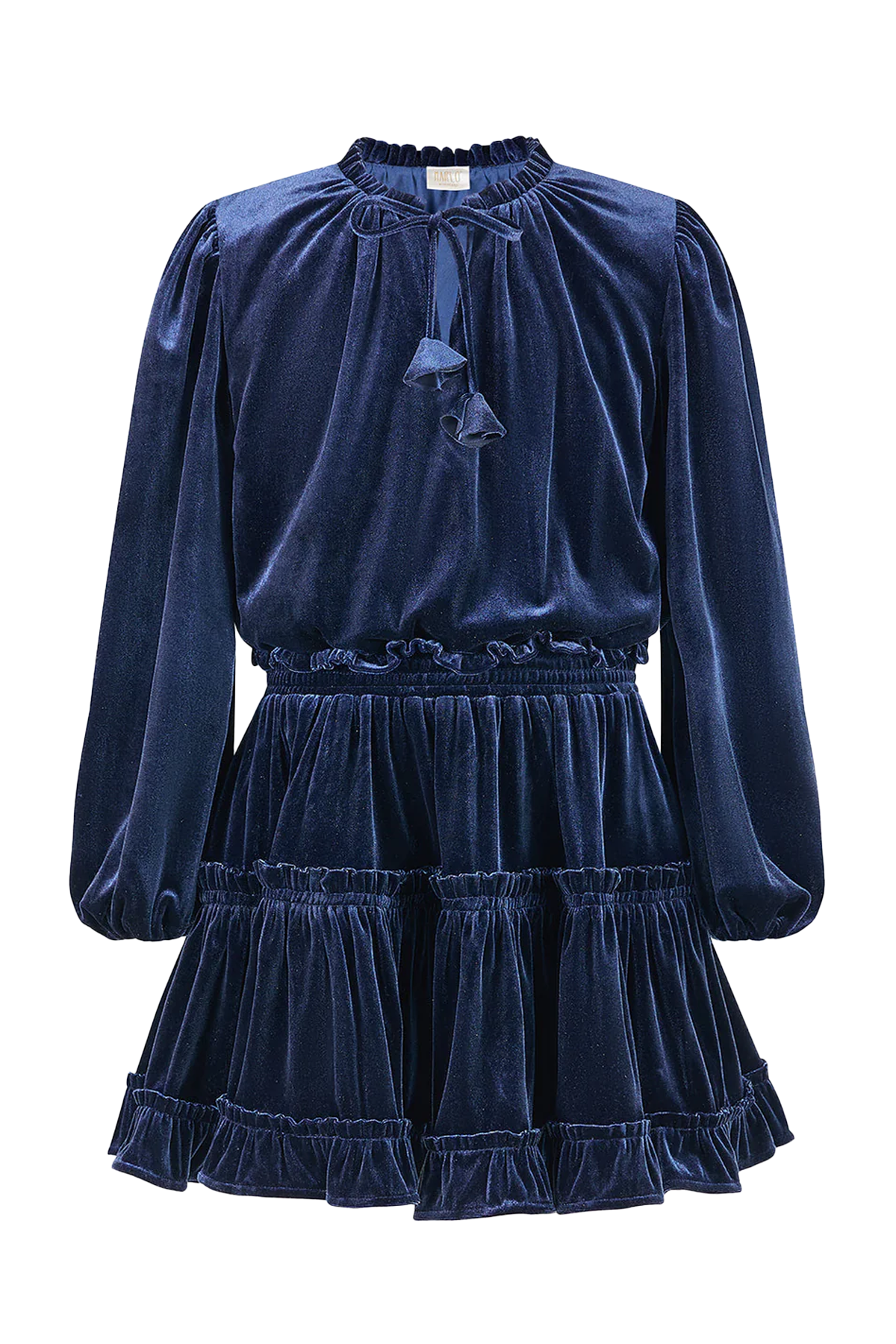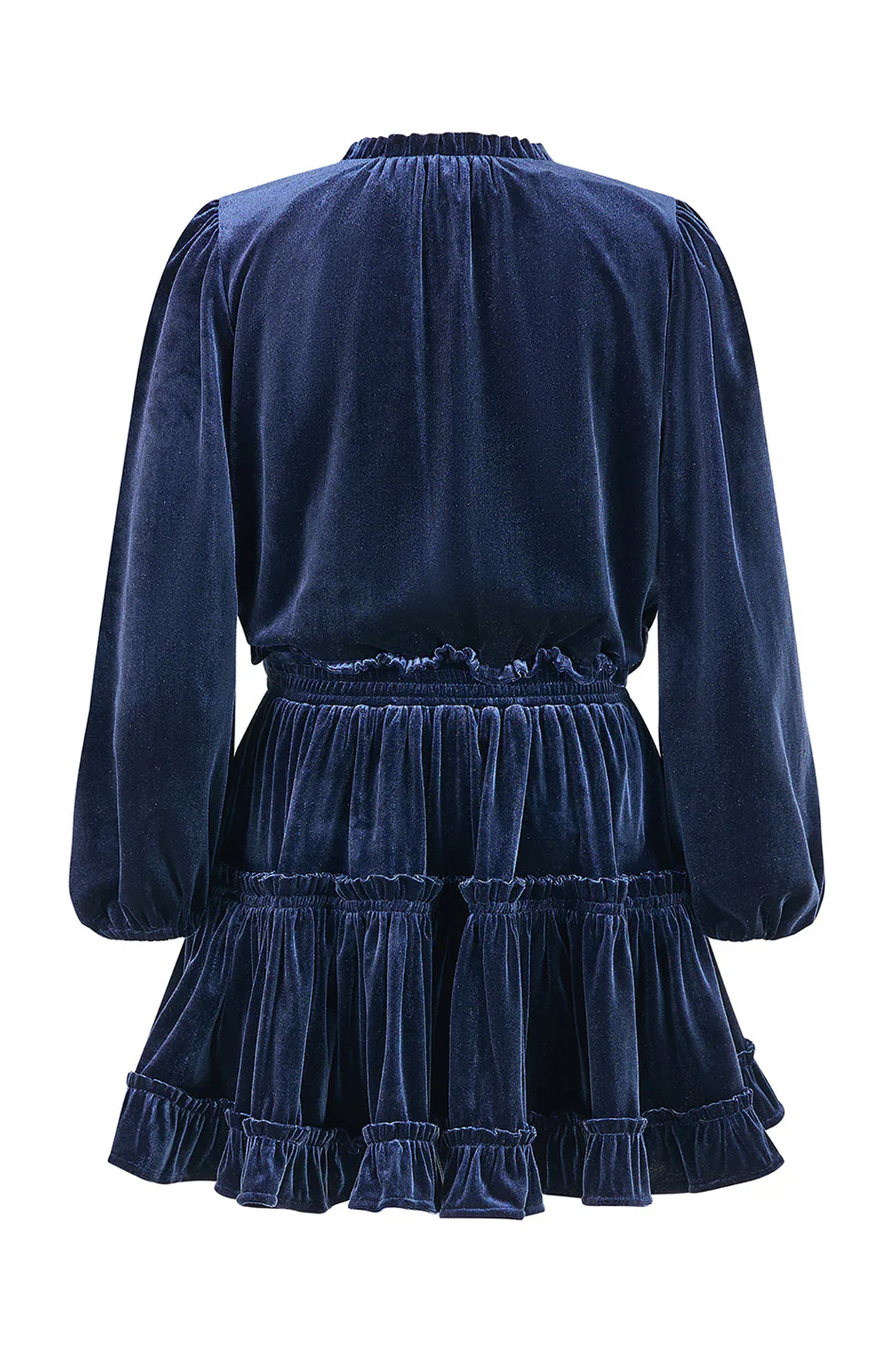 Sofistikerad klänning i en långärmad och kort modell, designad i sammet vilket sätter lyster till säsongens festliga tillställningar!