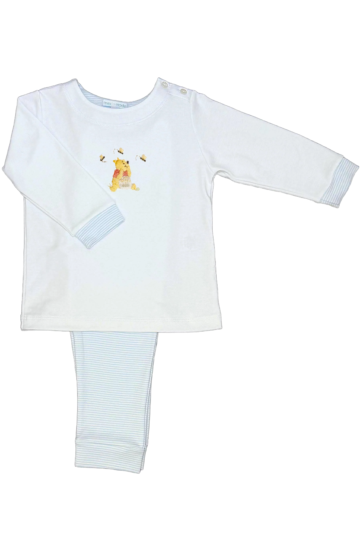 Tvådelad pyjamas illustrerad med en hungrig Nalle Puh! En bedårande pyjamas tillverkad i mjuk och slittålig pimabomull, försedd med muddande kantslut samt knäppning i axeln för ett enkelt ombyte till drömmarnas land!