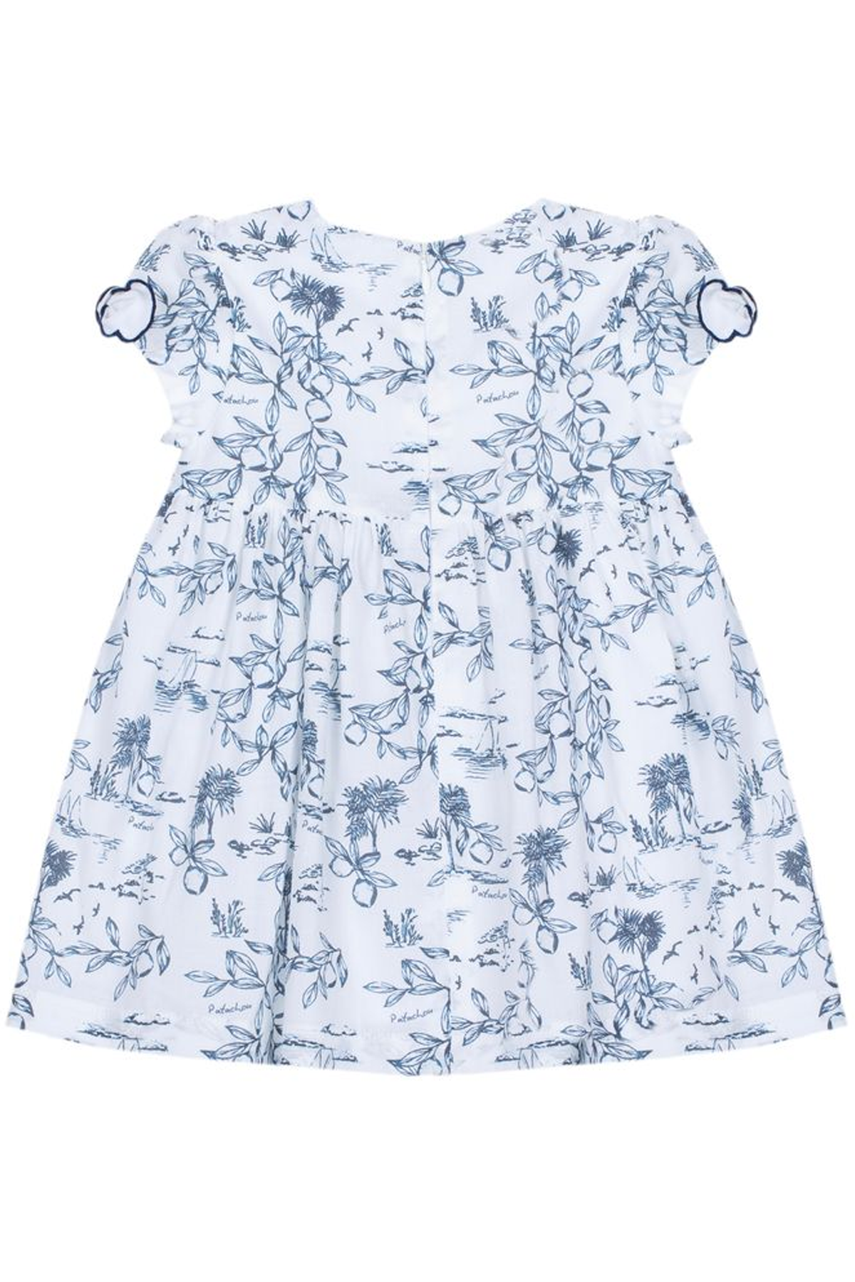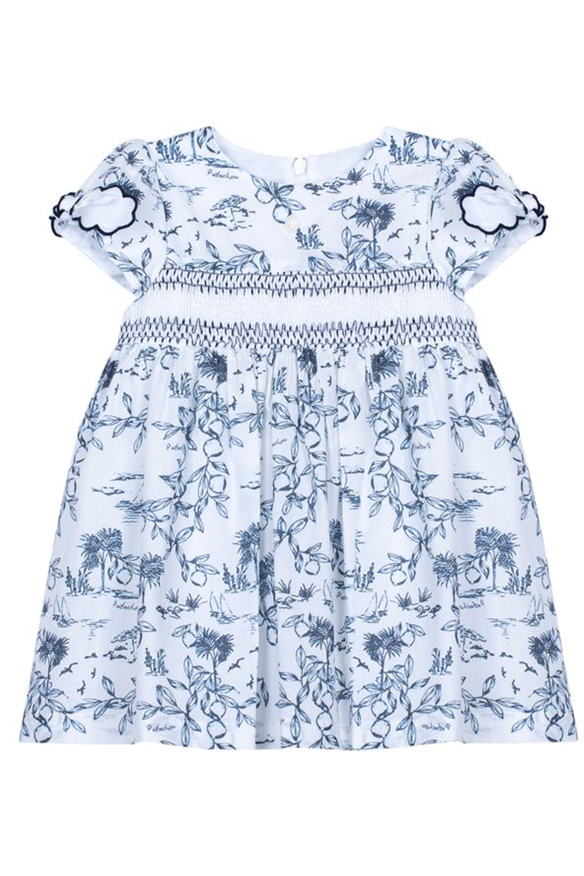 A-linjeformad klänning med smockad detalj och nätta ballongärmar. En tidlös klänning med design inspirerad av St. Tropez och citrusfrukter i fokus, praktiskt försedd med dold dragkedja i rygg för ett enkelt ombyte.
