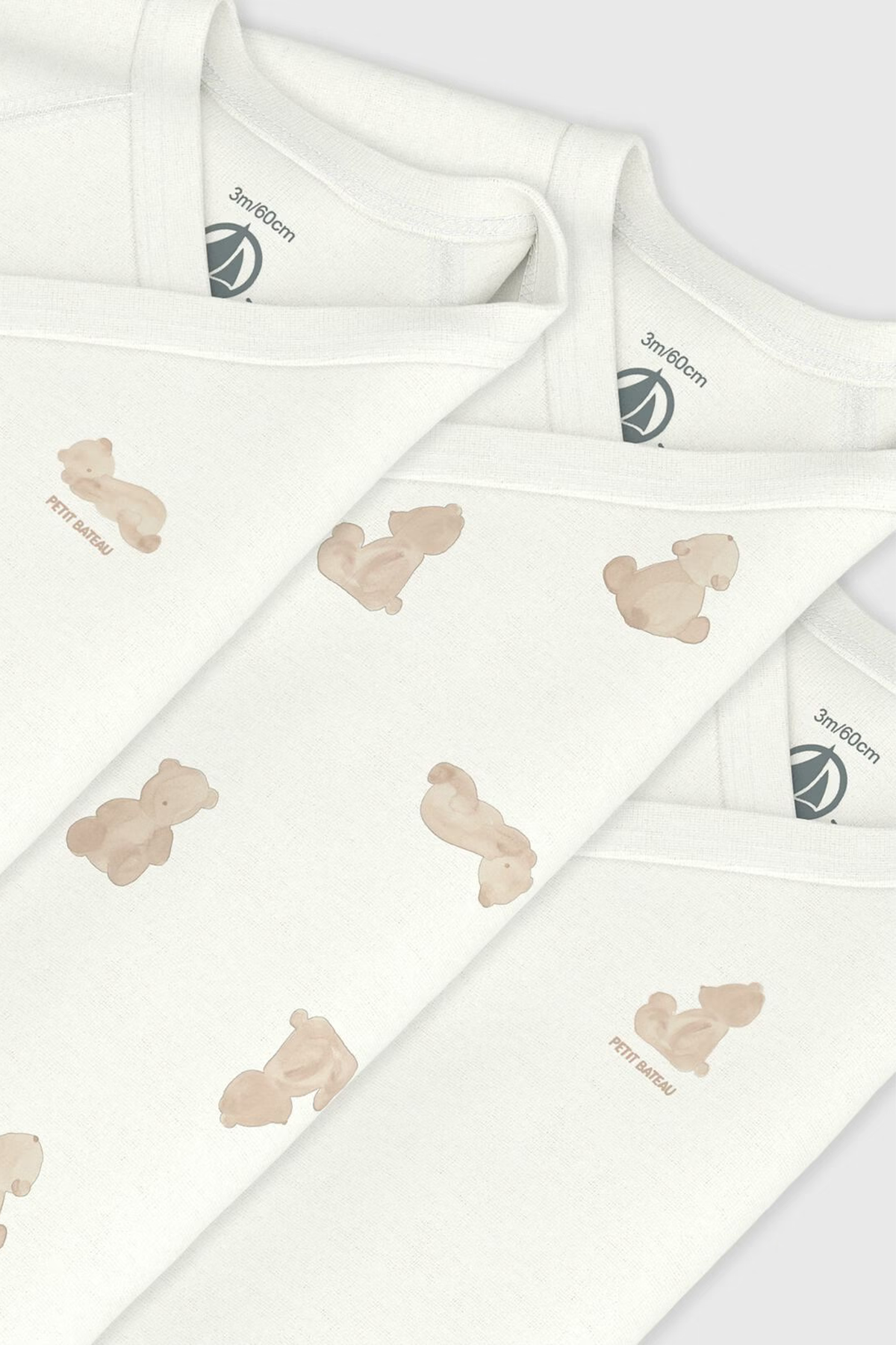3-pack långärmade bodys tillverkade i Petit Bateaus ikoniska mjuka ribbstickning av 100% ekologisk bomull. Omlottknäppning med tryckknappar på sidan och i grenen, idealiskt för ombyte av de allra minsta i familjen!