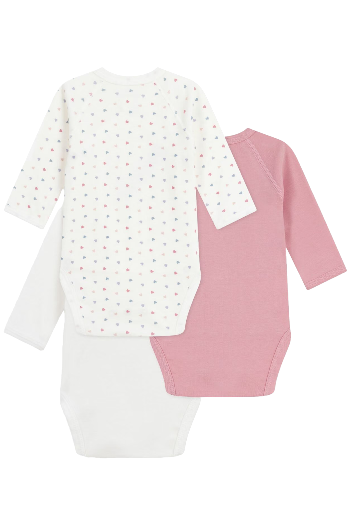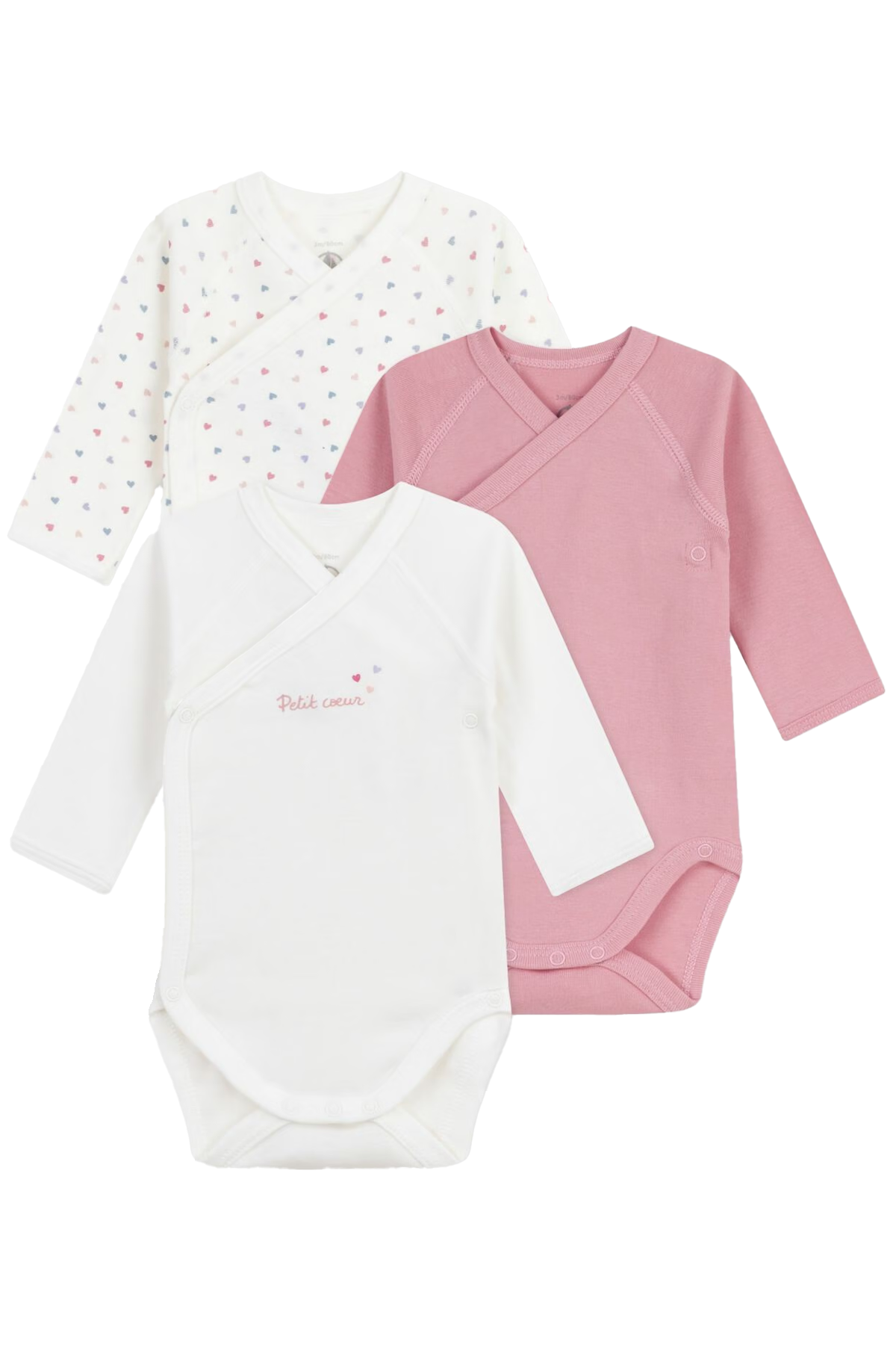 3-pack långärmade bodys tillverkade i Petit Bateaus ikoniska mjuka ribbstickning av 100% ekologisk bomull. Omlottknäppning med tryckknappar på sidan och i grenen, idealiskt för ombyte av de allra minsta i familjen!