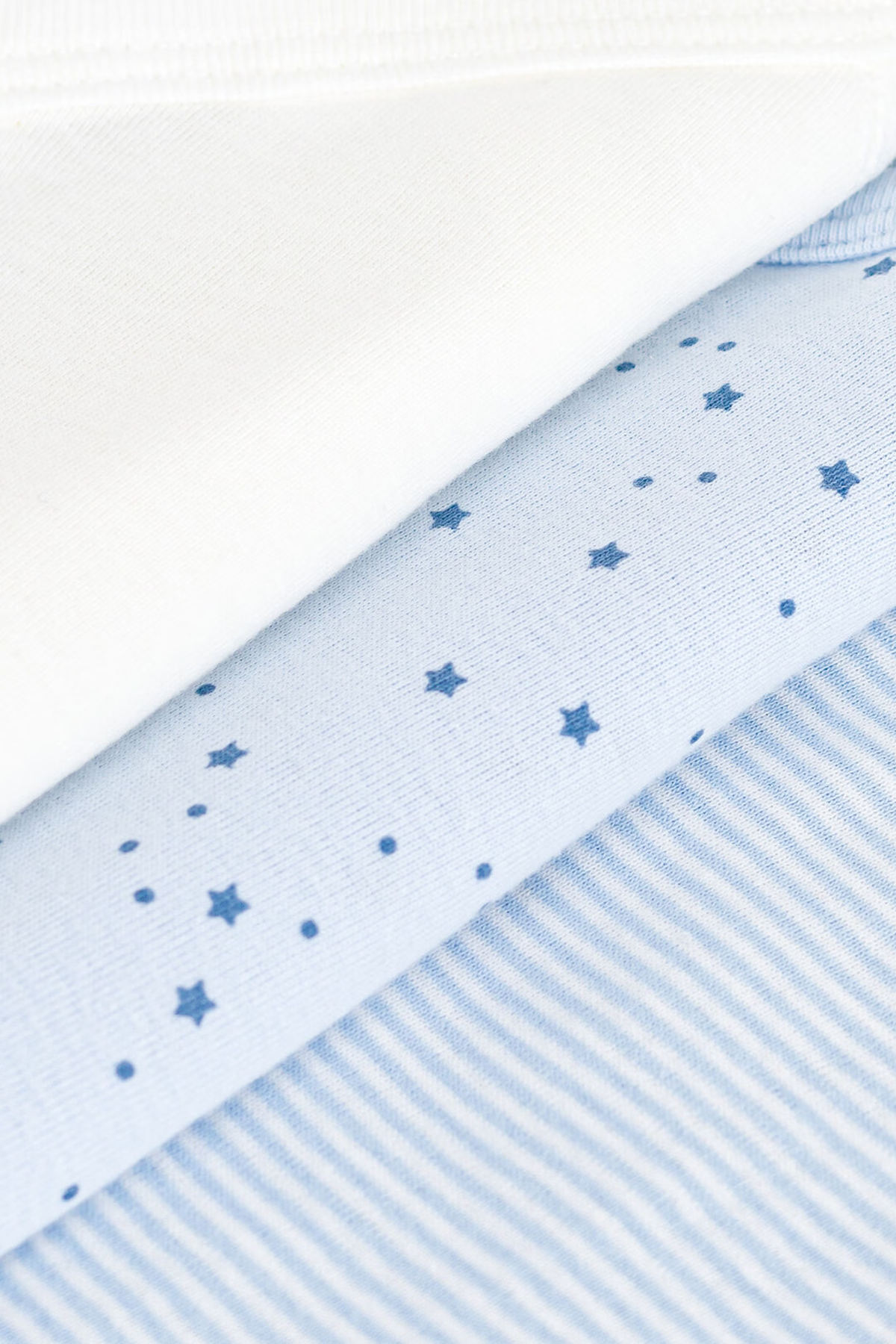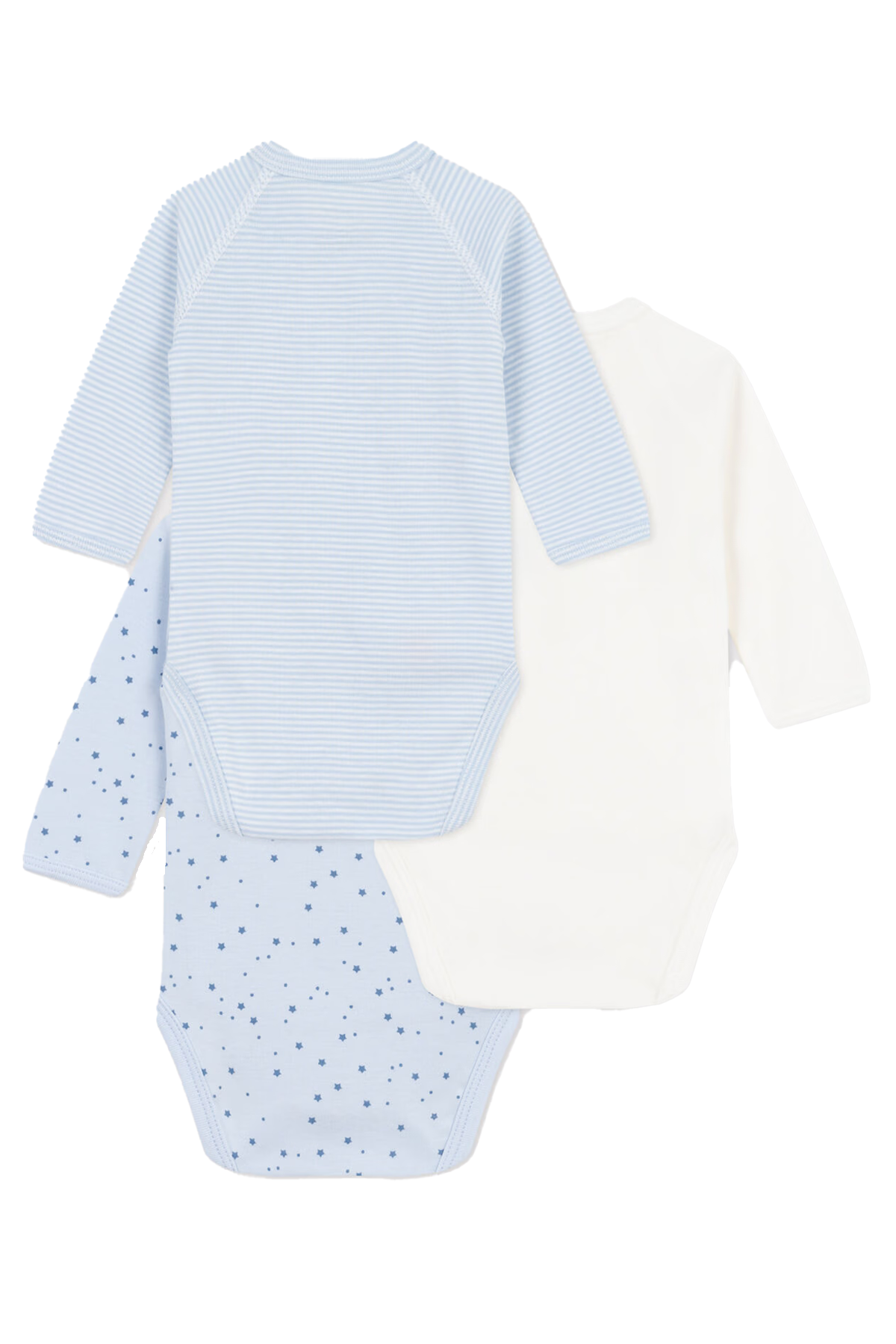 3-pack långärmade bodys tillverkade i Petit Bateaus ikoniska mjuka ribbstickning av 100% ekologisk bomull. Omlottknäppning med tryckknappar på sidan och i grenen, idealiskt för ombyte av de allra minsta i familjen!