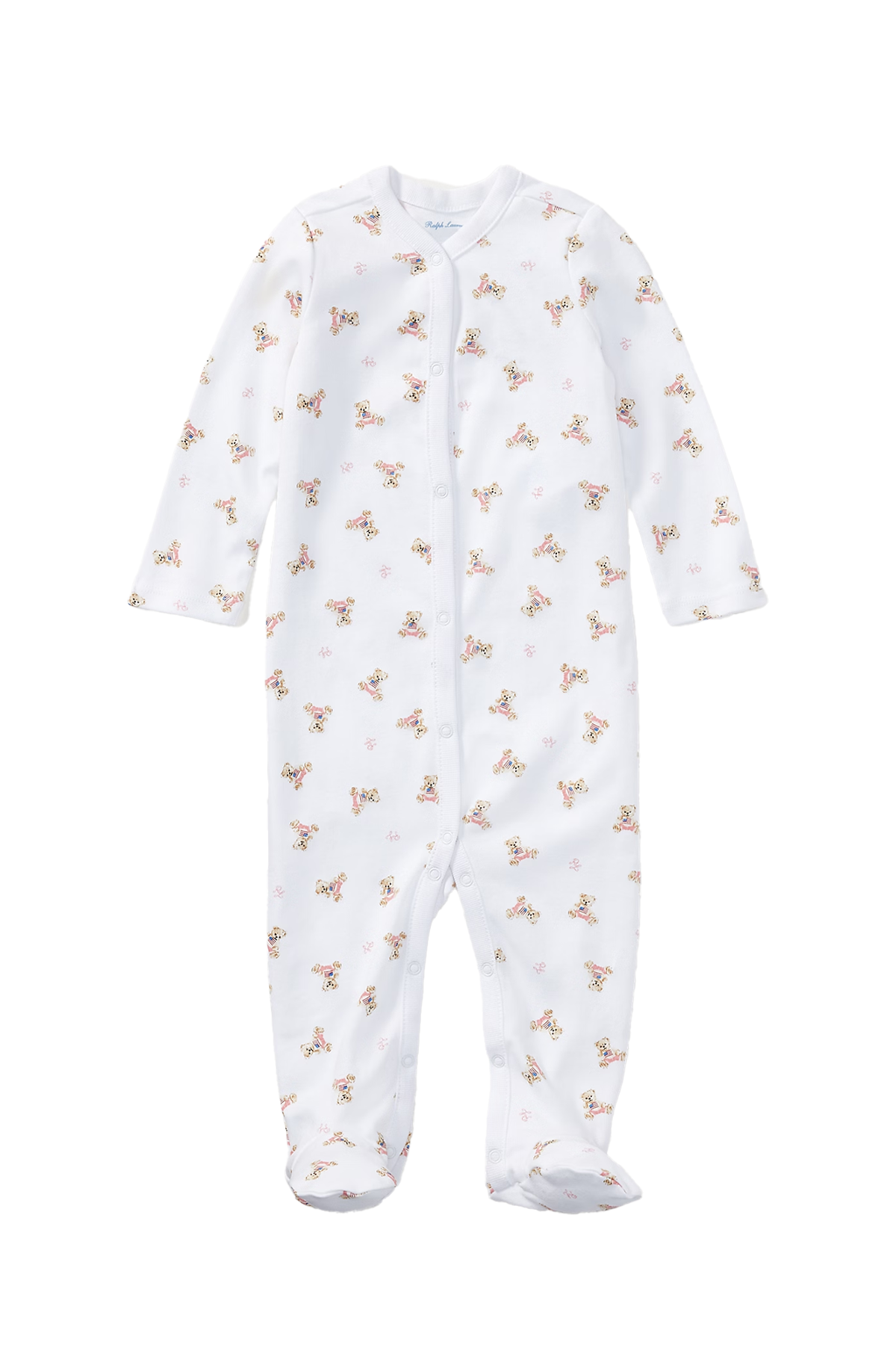 Pyjamas med fot i mjuk och behaglig bomull, illustrerad med modehusets karaktäristiska Polo Bear! En populär gåva att ge bort till familjens minsta medlem, perfekt att bära under mysiga hemmadagar och under sovstunden. Praktiskt försedd med tryckknappar framtill samt förslutbart ärmhål för extra komfort och värme.