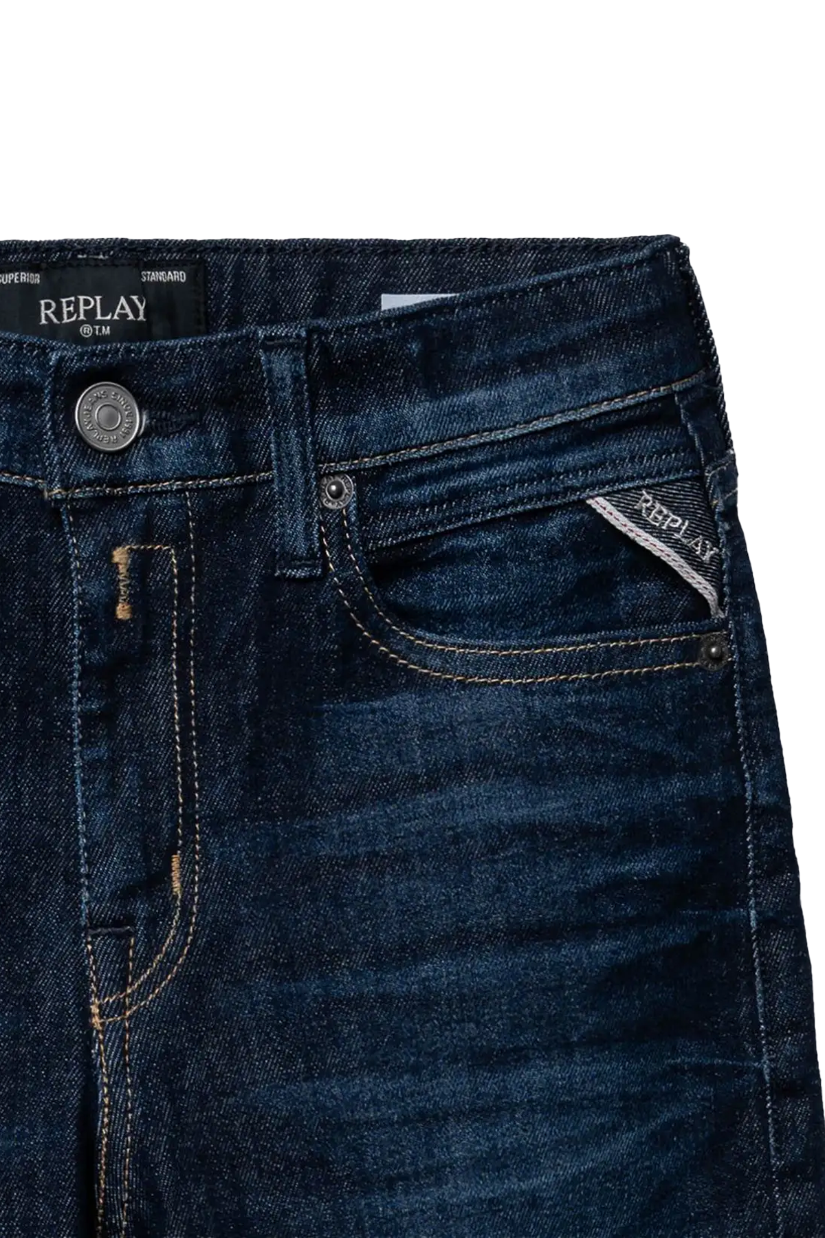 Jeans Thad håller en avslappnad och bekväm boyfriend-fit, en tidlöst trendig modell som sitter på höften i en rak passform med något avsmalnande ben. Ett perfekt val för dig som vill ha en ledig byxa utan att de blir för stora! Denna modell kommer i en tvättad blå nyans, och är praktiskt försedd med invändigt justerbar resår upp till strl. 10år!