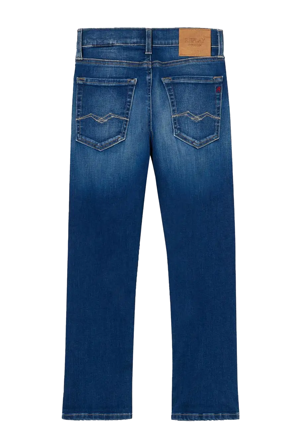 Jeans Thad håller en avslappnad och bekväm boyfriend-fit, en tidlöst trendig modell som sitter på höften i en rak passform från midja till benslut. Denna modell är designad i Replays patenterade Hyperflex, en innovativ vävningsteknik som ger jeans en hög elasticitet, komfort och formbeständighet! Praktiskt försedd med invändigt justerbar resår upp till strl. 10år!