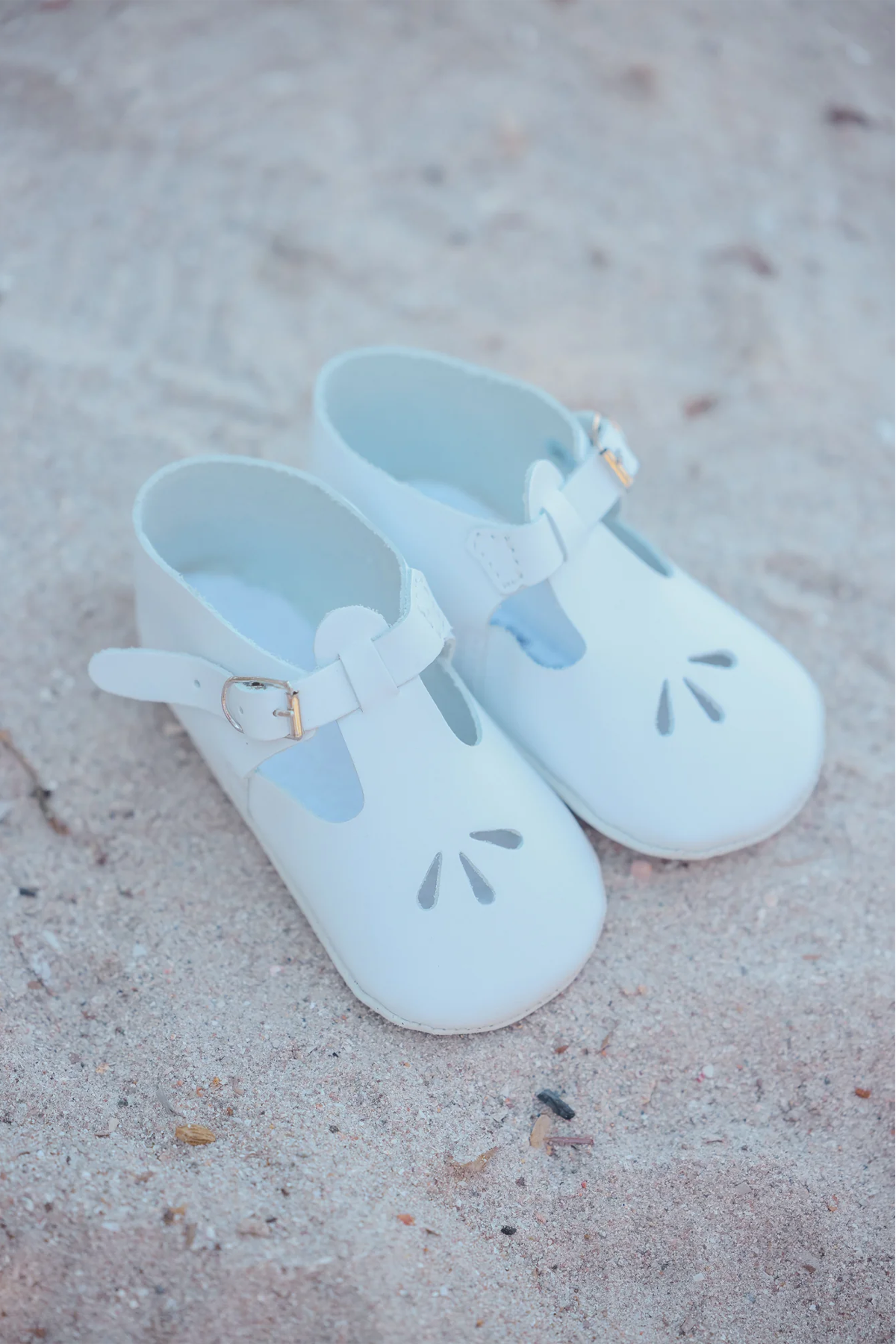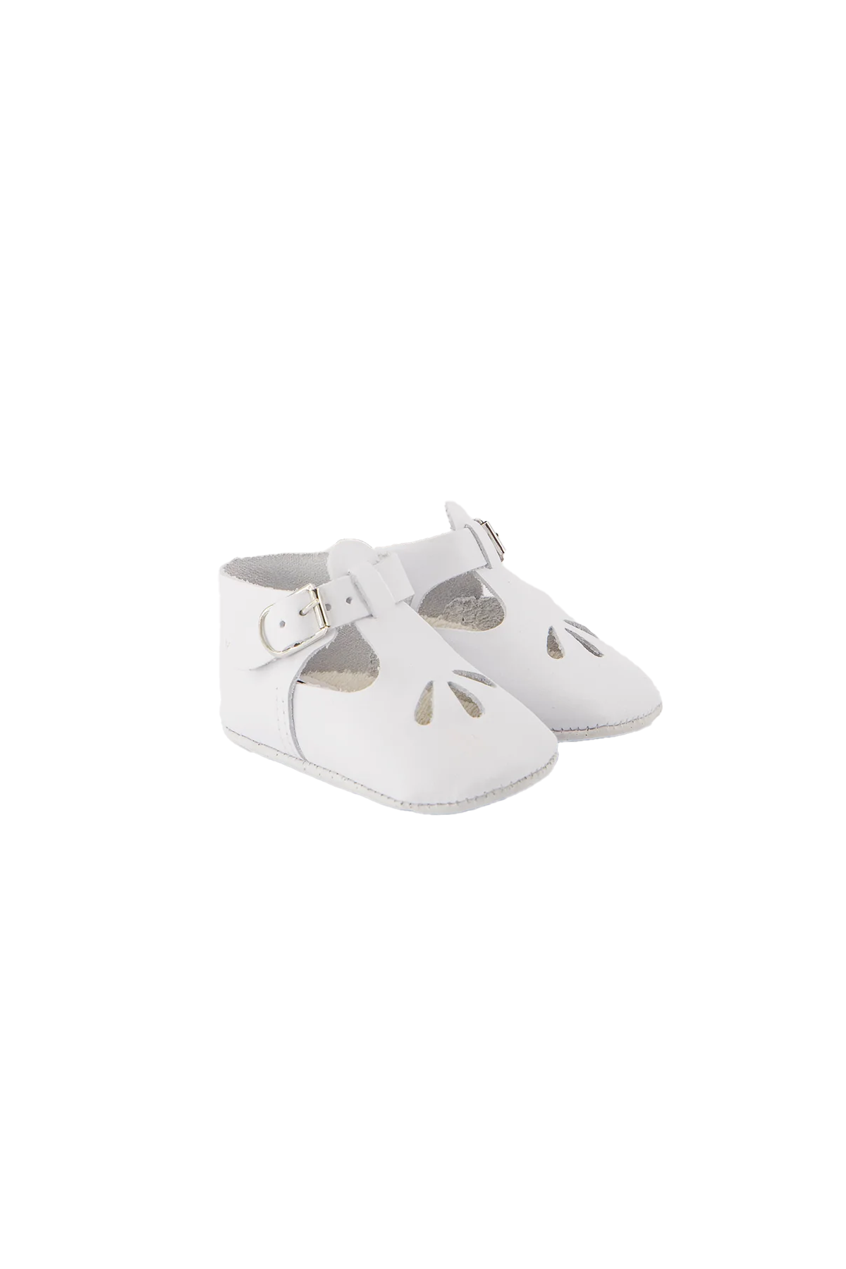 Mjuka läderskor med spänne och charmigt hålmönster, det perfekta valet för livets första tillställning!