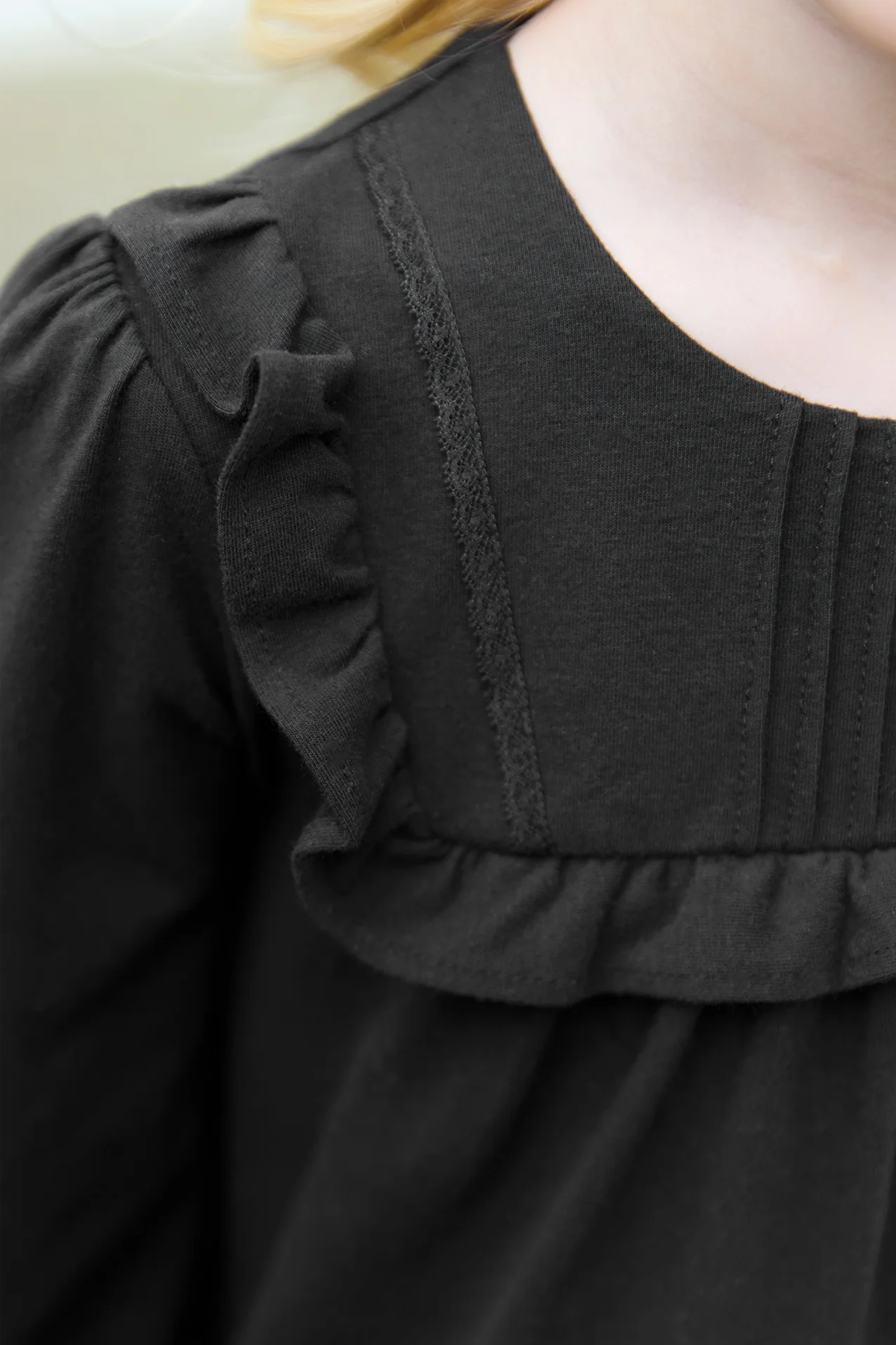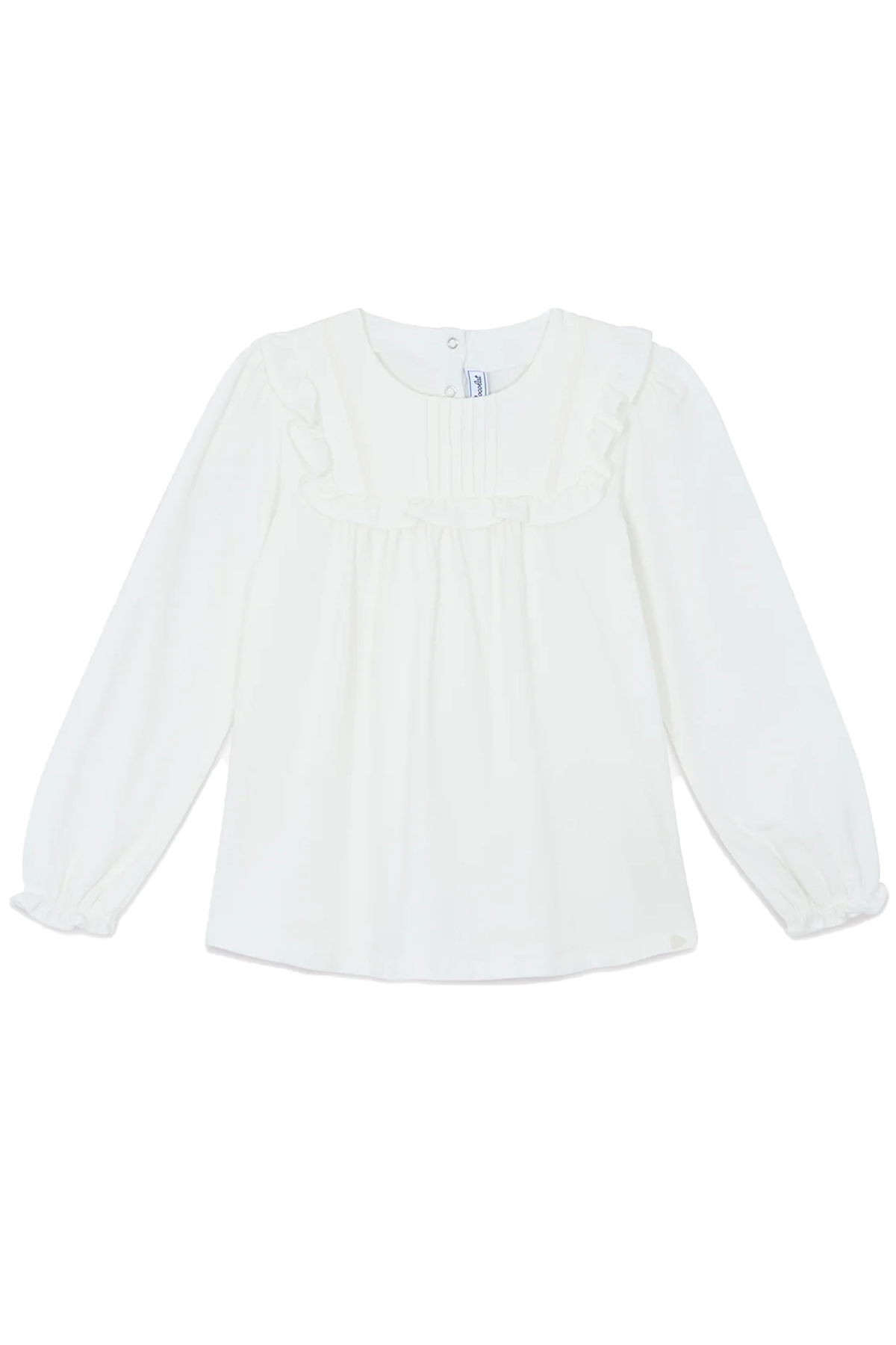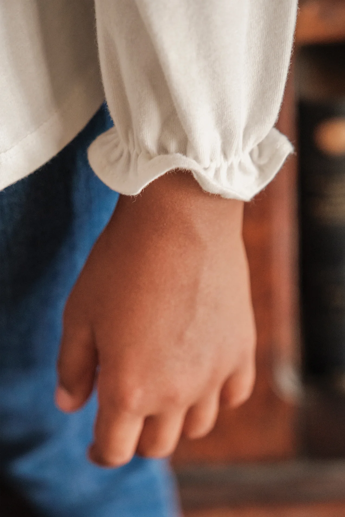 Charmerande volangtopp i långärmad design, försedd med resår längs ärmslut och diskreta tryckknappar i rygg för optimal passform. En perfekt topp i basgarderoben som kommer i tre nyanser att välja mellan, vilket erbjuder ett stort utbud av stylingsmöjligheter till både vardags som kalas!