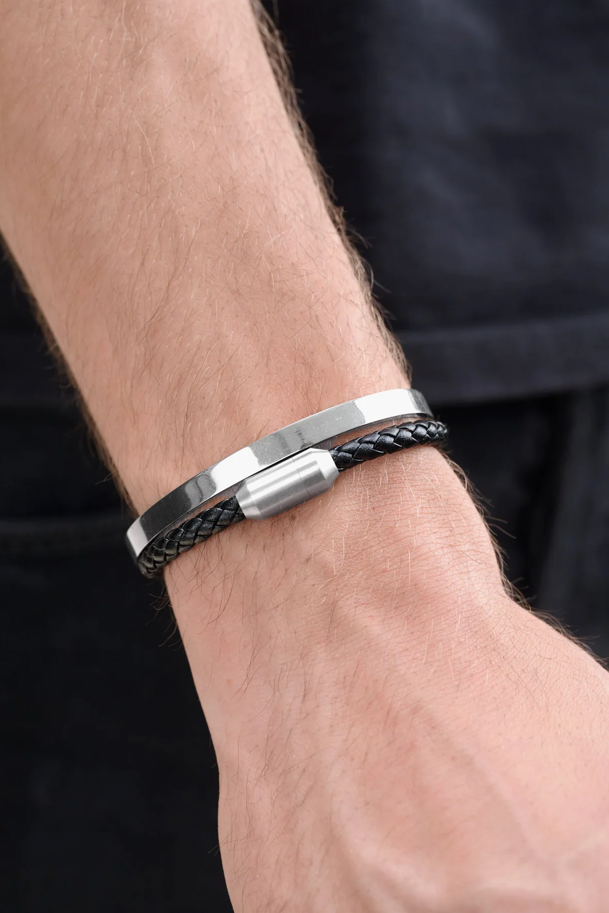 Klassiskt läderarmband i en stilren design. Armbandet har en flätad design i mjukt läder med detaljer i rostfritt stål.