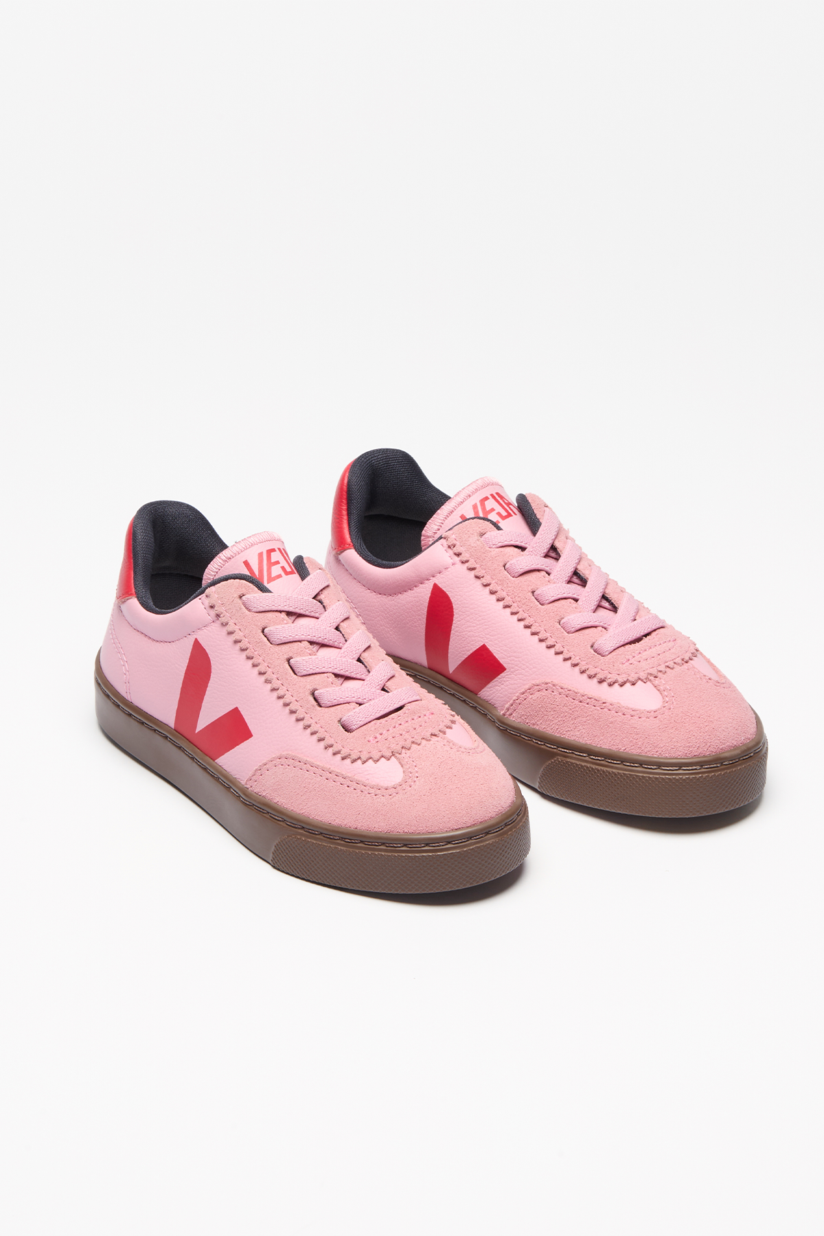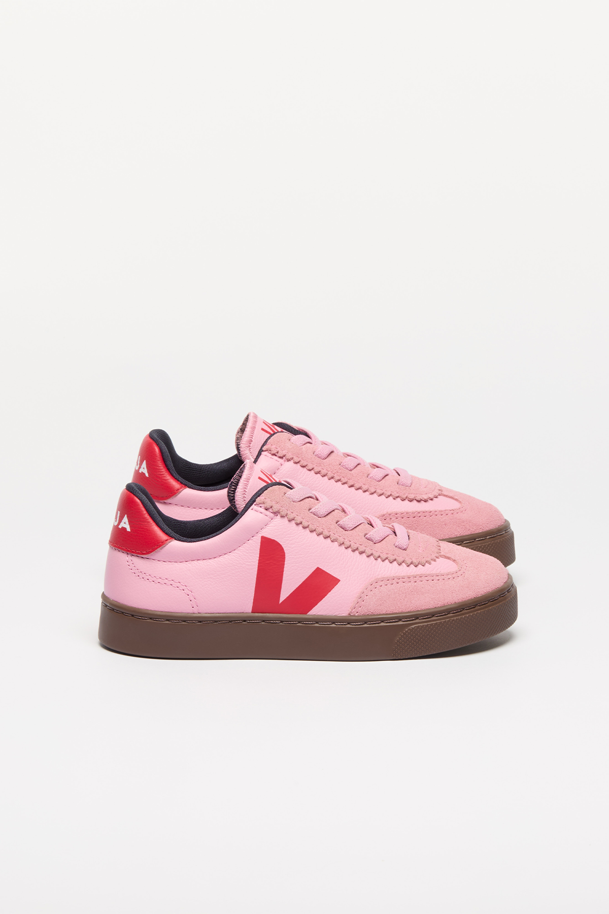 Sneaker Small Volley är en sportig stil till garderoben som kombinerar en rosa botten av läder och en lätt gummisula i brun. Sneakern har elastiska skosnören vilket gör de superenkla att kliva i.