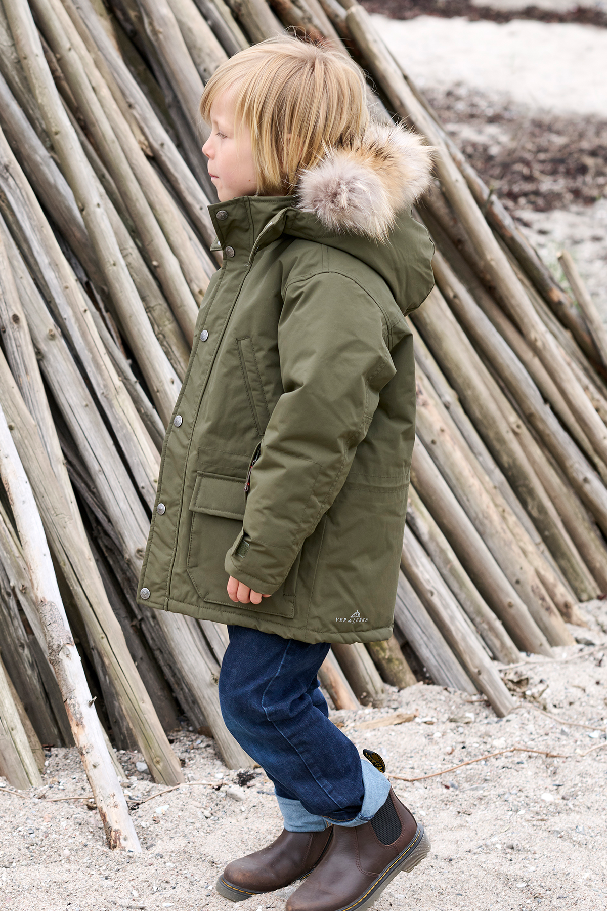 Ver de Terres klassiska dunjacka med avtagbar luva och SAGA-pälskrage. Passar både för skidbacken och till vardags under säsongens kyligare dagar. Jackan tål upp till 20 minusgrader och har en slittålig yta.