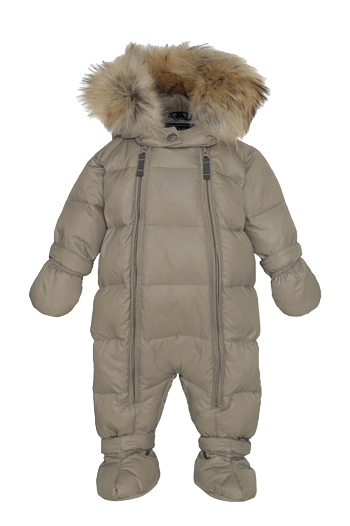 Denna mjuka och praktiska babyoverall från Ver de Terre är ett återkommande nyckelplagg i vintergarderoben med varm dunfyllning och omfamnande pälshuva. Både huvan och pälsen är avtagbara och kan anpassas efter väder och behov. Overallen har dubbla dragkedjor som gör det lätt att ta på och av samt knäppa upp om det blir för varmt.