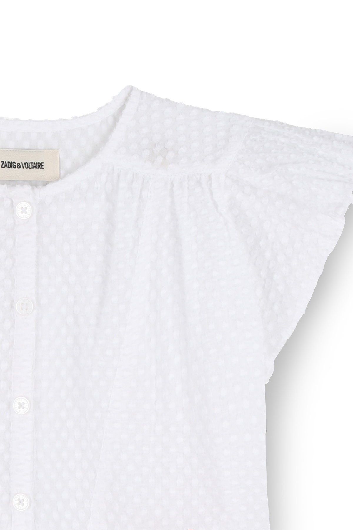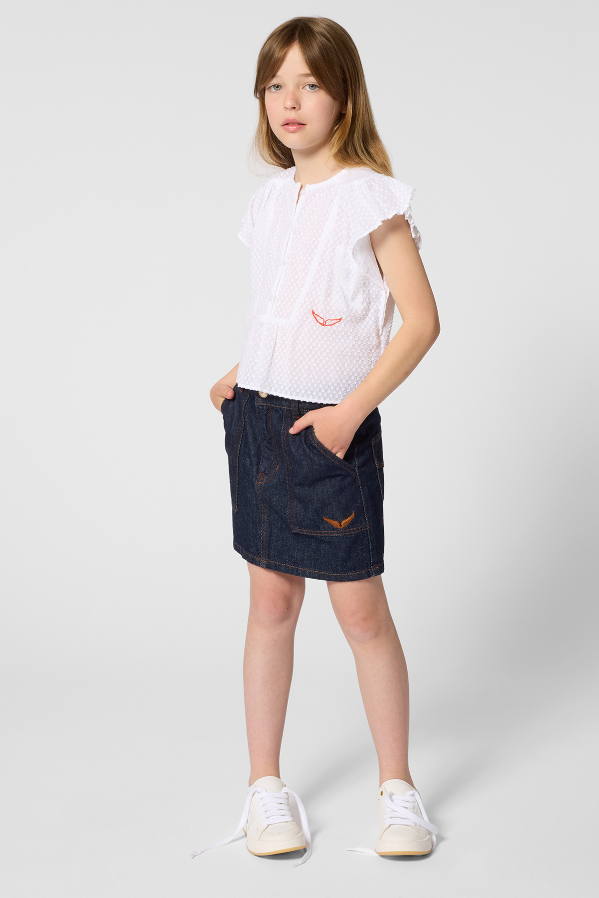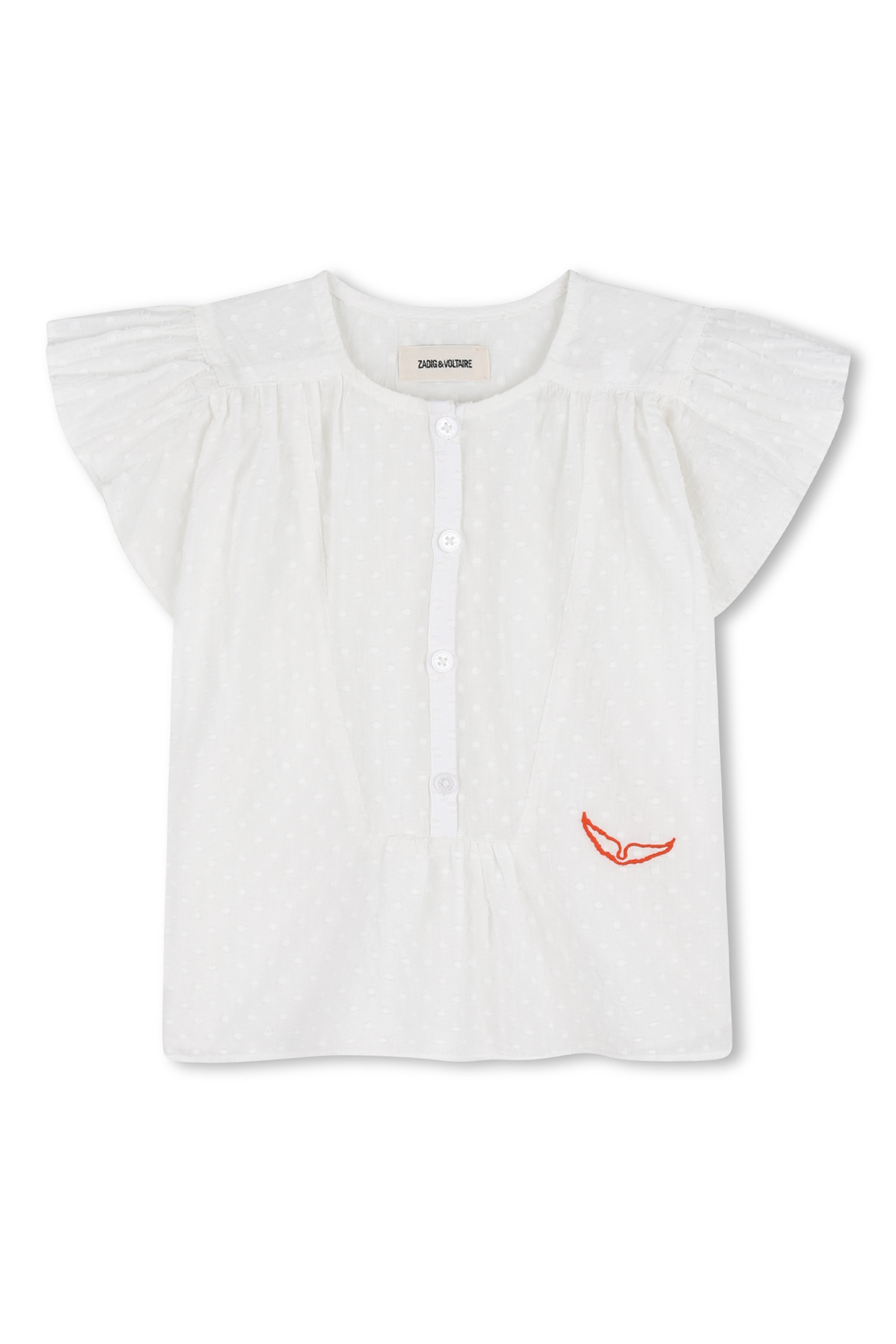 Strukturerad blus tillverkad i tunn och luftig bomull, designad med nätta fjärilsärmar och modehusets karaktäristiska logga i kontrasterande rött! En charmerande blus som matchas perfekt med Kjol Sophie för en komplett look!